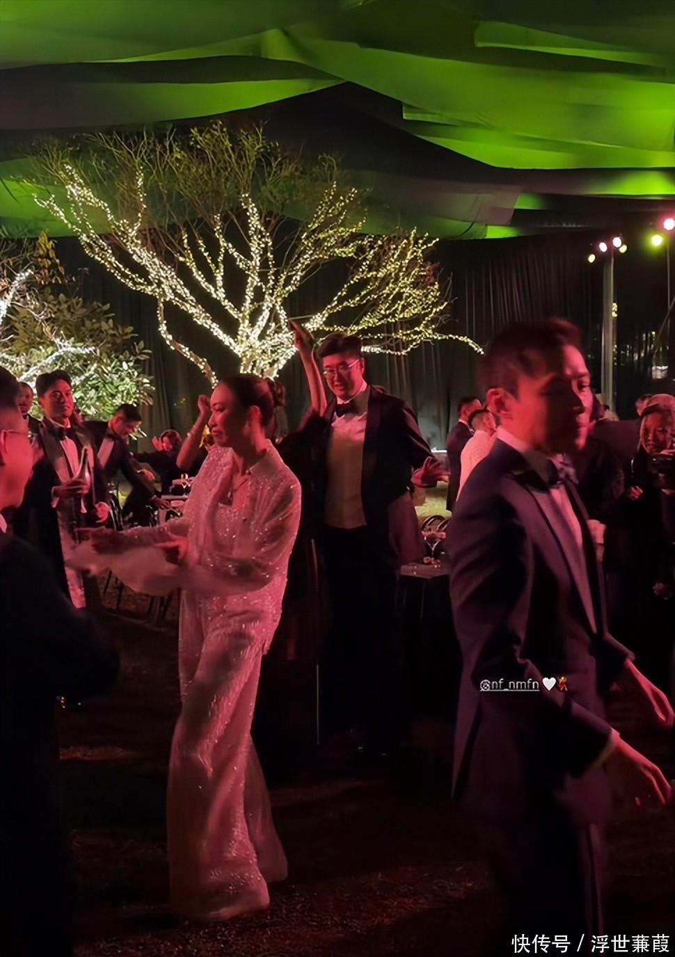 户外仪式结束后,大家又来到室内用餐,晚宴结束还有舞会,年轻朋友一起欢歌载舞,和普通的豪门婚礼很不一样,感觉霍启仁很尊重女方,一切都按照女方的喜好来安排。